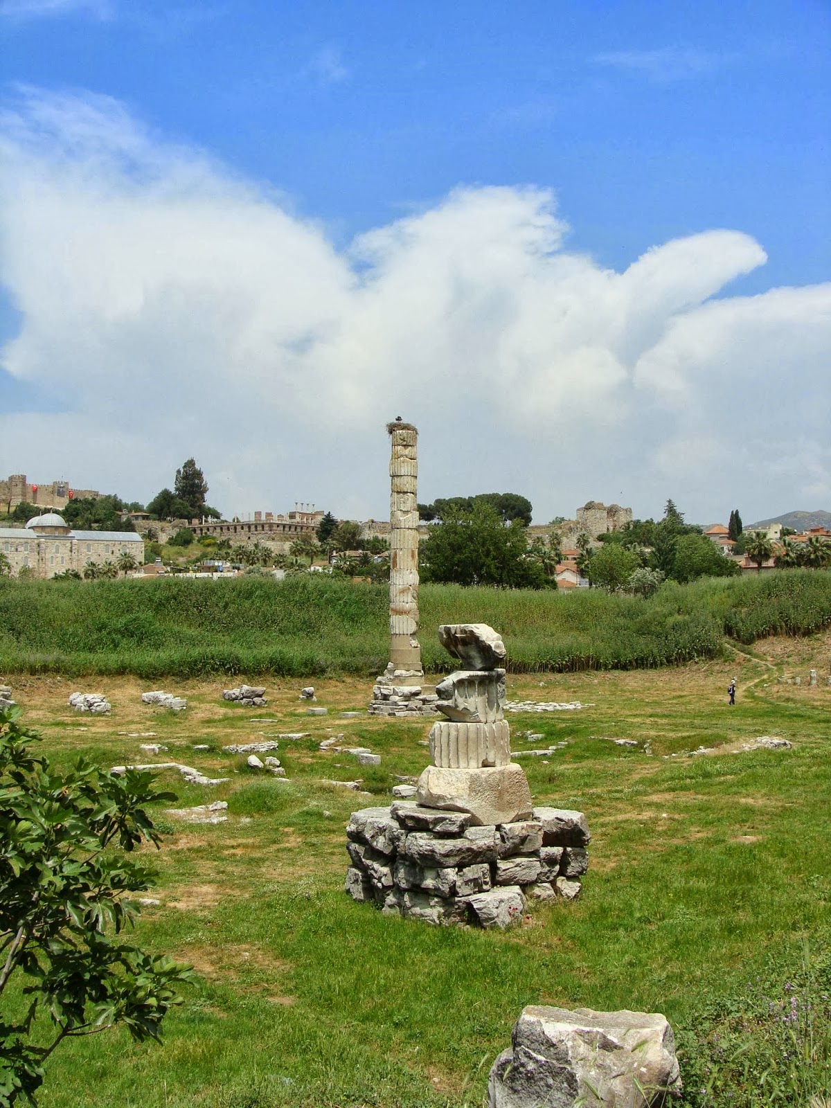 Voltamos para Selcuk para ver o que restou do templo de Artemis, uma das 7 maravilhas do mundo antigo. E o que tinha lá era uma coluna meio inteira e outra pela metade. A coluna maior já virou lar de algumas cegonhas.