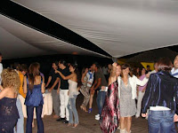 A festa era so a noite, mas como so escurece mesmo depois das 21:30, chegamos na praia ainda com o por do sol. A praia aqui eh como a Praia do Futuro em Fortaleza, com muitas barracas. A diferenca eh que as barracas daqui sao muito organizadas, parecem mais clubes do que barracas de praia. A recepcao foi na Il Corallo, que eh onde o Riccardo joga volei de praia. (o Riccardo jogou nas Olimpiadas de Pequim)