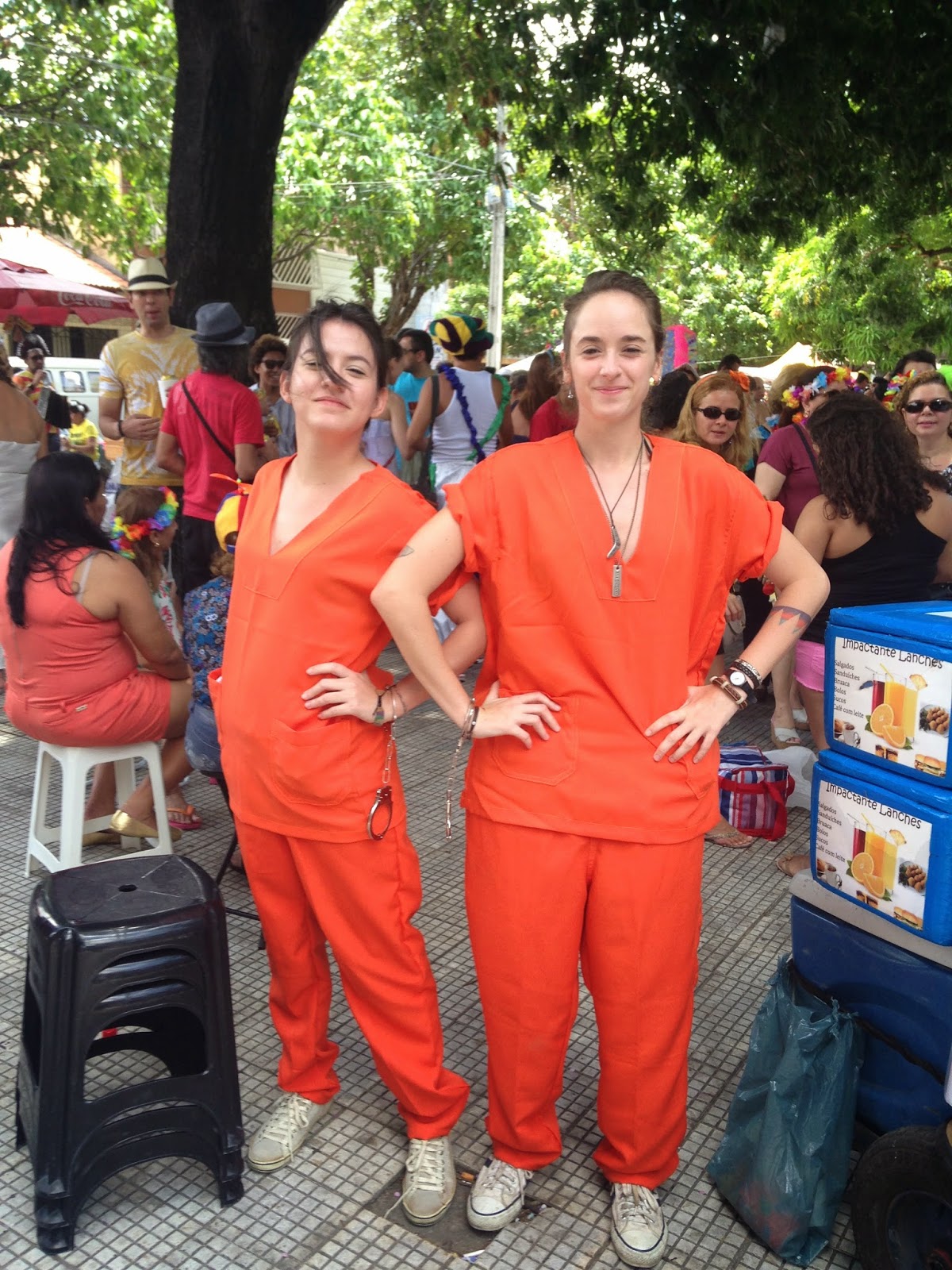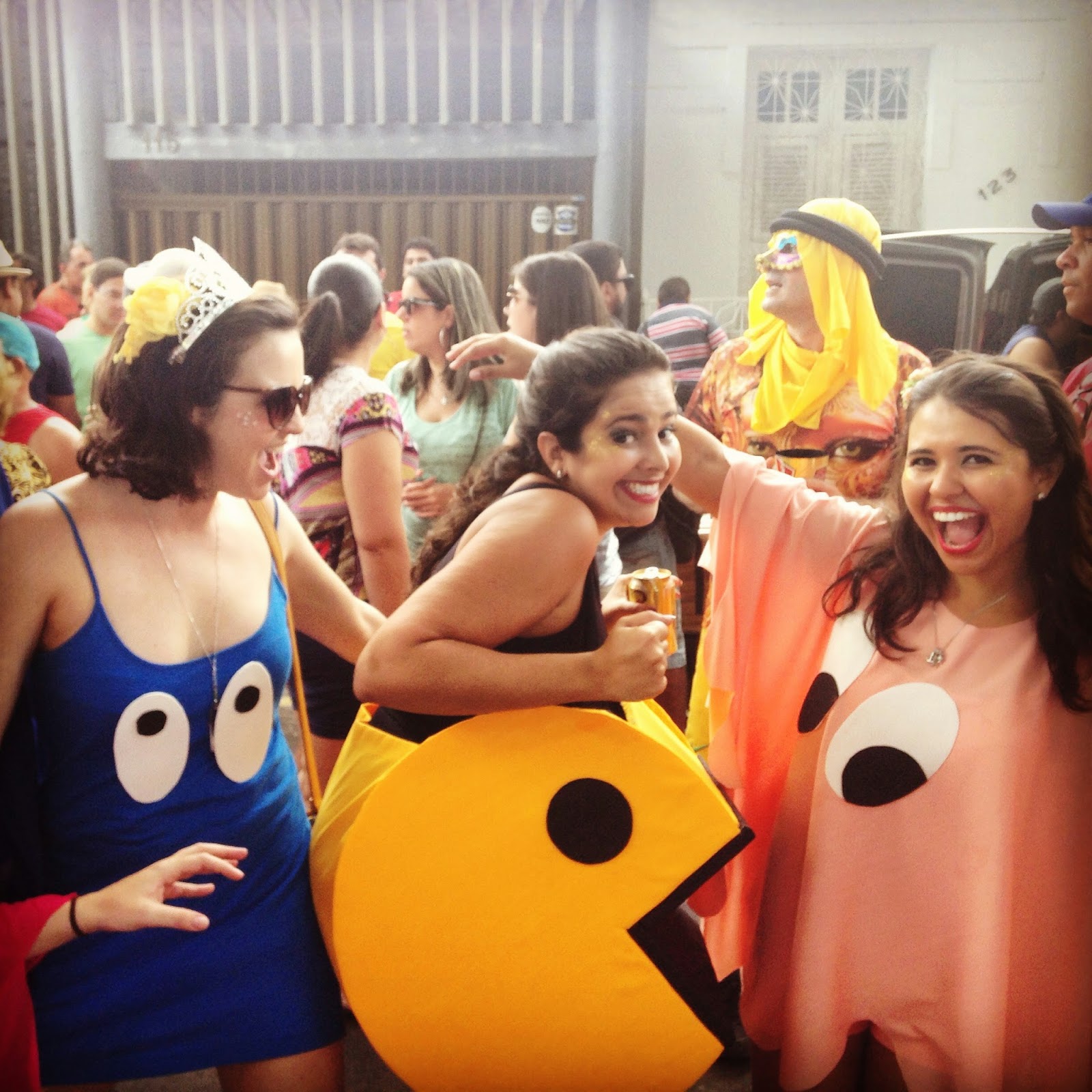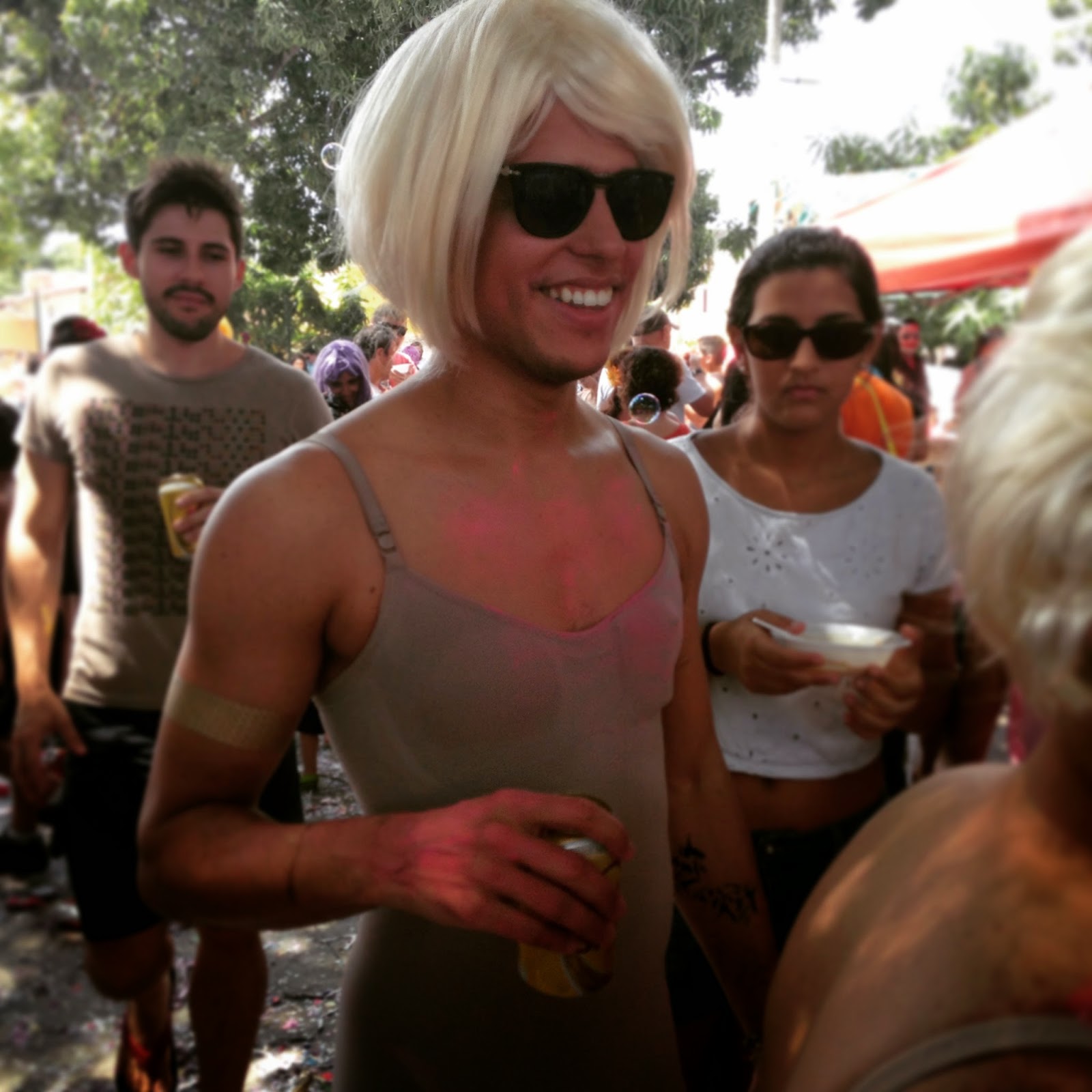 Domingo fui no bloco Sanatório Geral. Esse bloco é bacana porque é o único na cidade onde as pessoas se dedicam as fantasias e tem muita coisa legal. É carnaval com famílias. O aglomerado é numa praça pequena, arborizada com uma banda animando com músicas de carnaval (de marchinhas a frevo). Depois de umas duas horas de aquecimento a banda sai pelas ruas do bairro, mas esse ano tinha tanta gente que várias pessoas ficaram na pracinha esperando a banda voltar.