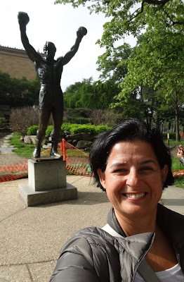igual ao Rocky Balboa, claro. Depois de ver a estátua dele que fica no pé das escadas, subi e desci correndo umas cinco vezes tocando a musica no celular. E não era a única, tem muita gente que vai lá fazer isso e é muito divertido ficar olhando.